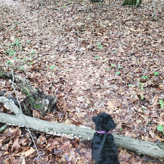 My former grandpup, named Coach, was a Beagle/Whippet/Jack Terrier type. He loved the woods just like me, she loves the lap!